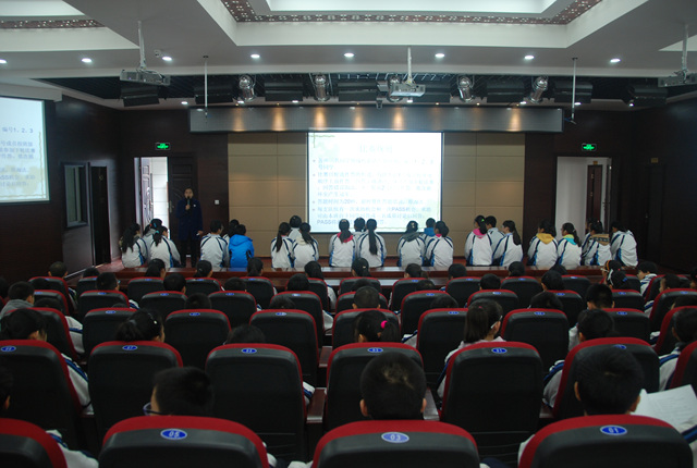 11月26日下午,我校八年级全体师生共聚文化中心一楼报告厅参加本届读书节活动之一弟子规比赛。本次比赛采用淘汰赛制,各班派出三位选手组成参赛队,轮流答题,答错即被淘汰直至产生最后冠军。为了增加比赛的趣味性和激烈性,每班选手还有一次求助同学和一次过题的机会。